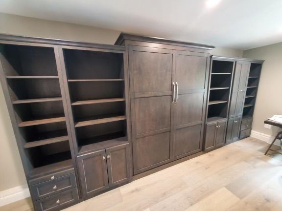 Our Murphy Beds can be customized to fit your needs. Our wall beds can have lights, shelves, bookcases, desks, and more fitted or added to them.
